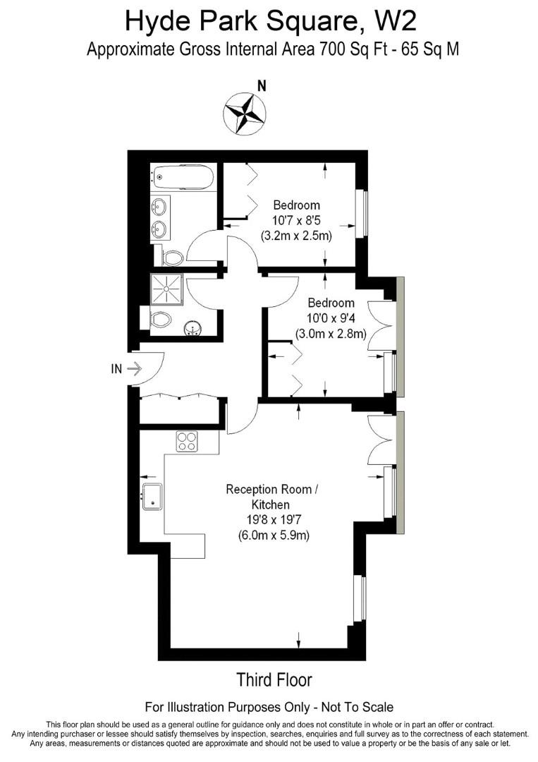 A small, 700sqft / 65 sqm but perfectly formed two Bedroom, two bathroom, 3rd floor (with lift) apartment forming part of a recently built block located on the prestigious Hyde Park Square. Connaught Village and Hyde Park are both located nearby. Offered with a long lease.