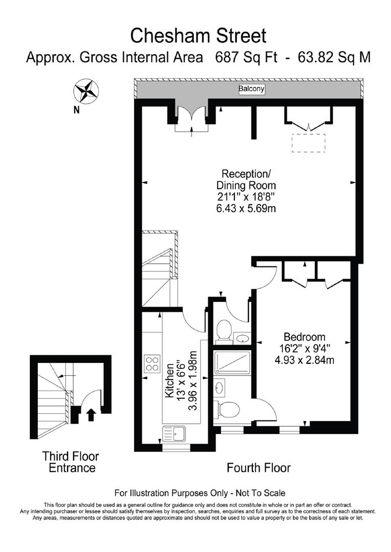 As SOLE AGENTS, Napier Watt are pleased to offer an exceptionally attractive, spacious one bedroom apartment occupying the entire top floor of an elegant white stucco fronted house. The property covers a floor space of 687 sq. ft./63.82 sq. m. offered in excellent decorative condition, having been recently redecorated throughout and benefits from a small balcony to the front, with views to front and rear. Chesham Street is a quiet one-way street and is very well placed for the excellent shops, world class restaurants and transport facilities of Knightsbridge, Sloane Square and Belgravia Village.