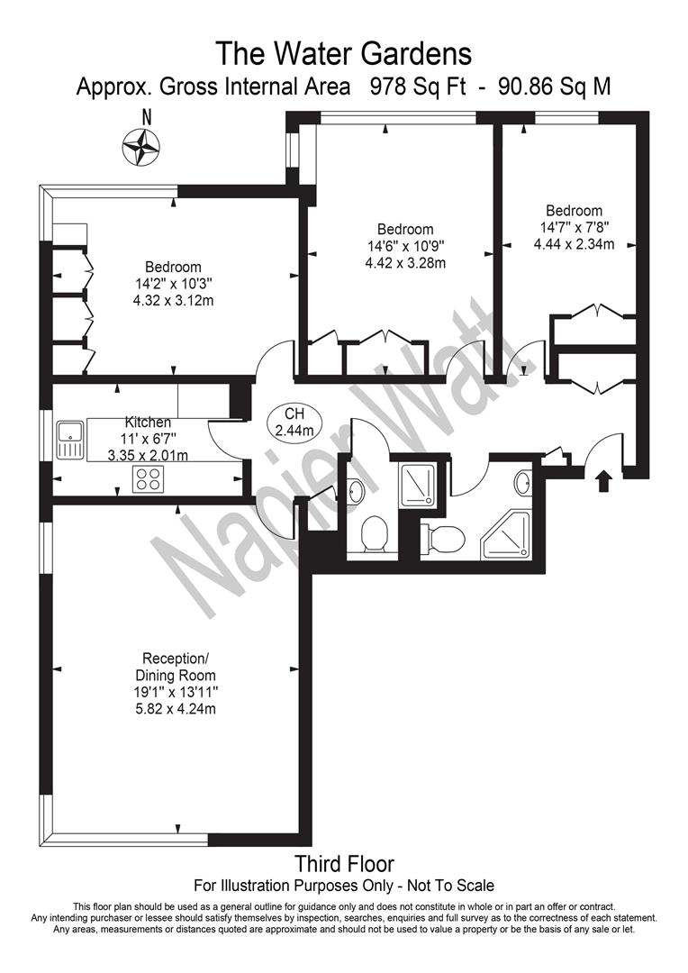 Napier Watt is pleased to offer for auction this spacious 3rd-floor apartment (978 sqft / 90 sqm) featuring three bedrooms and two shower rooms in a purpose-built block with 24-hour porter service and passenger lifts.