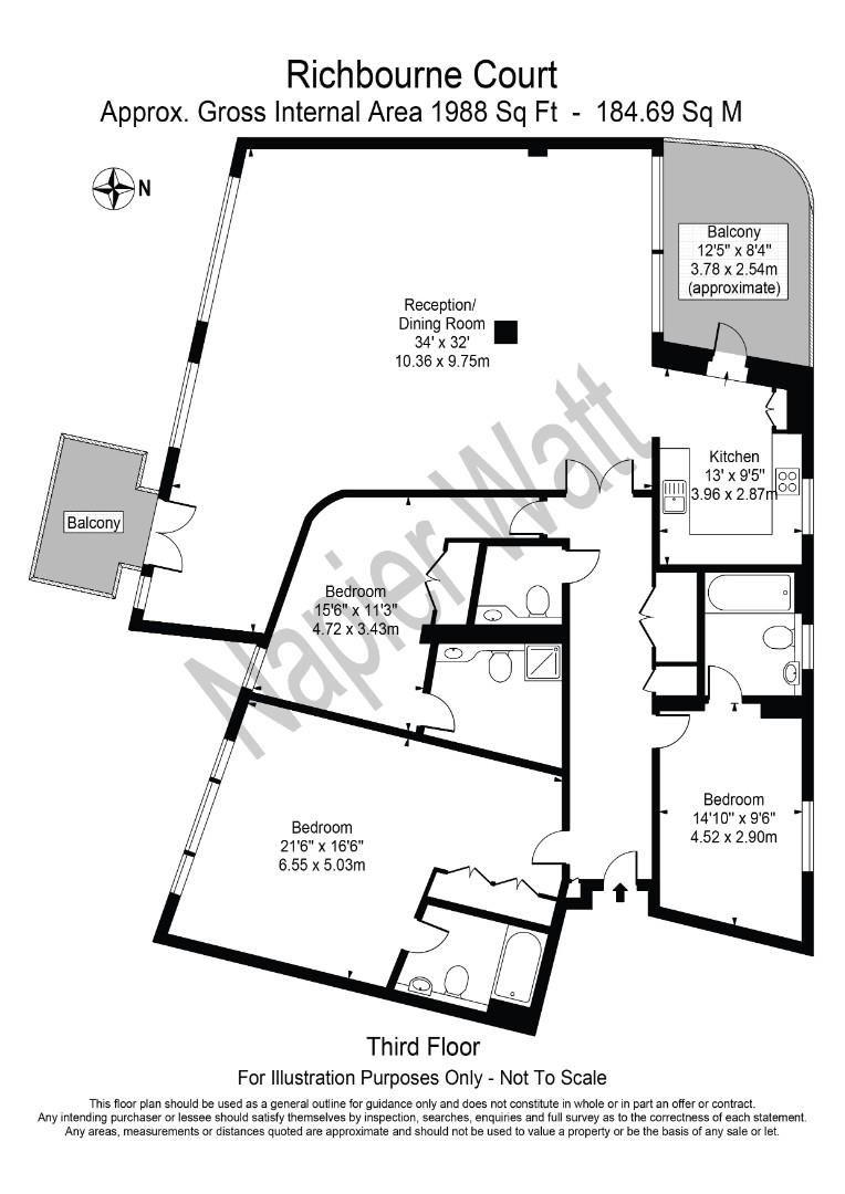 Entrance Hall : Large Reception Room : Kitchen / Breakfast Room : 3 Bedrooms All Ensuite : Guest WC : Balcony : Secure Under Ground Parking : Porter : Lifts : Large Communal Entrance
