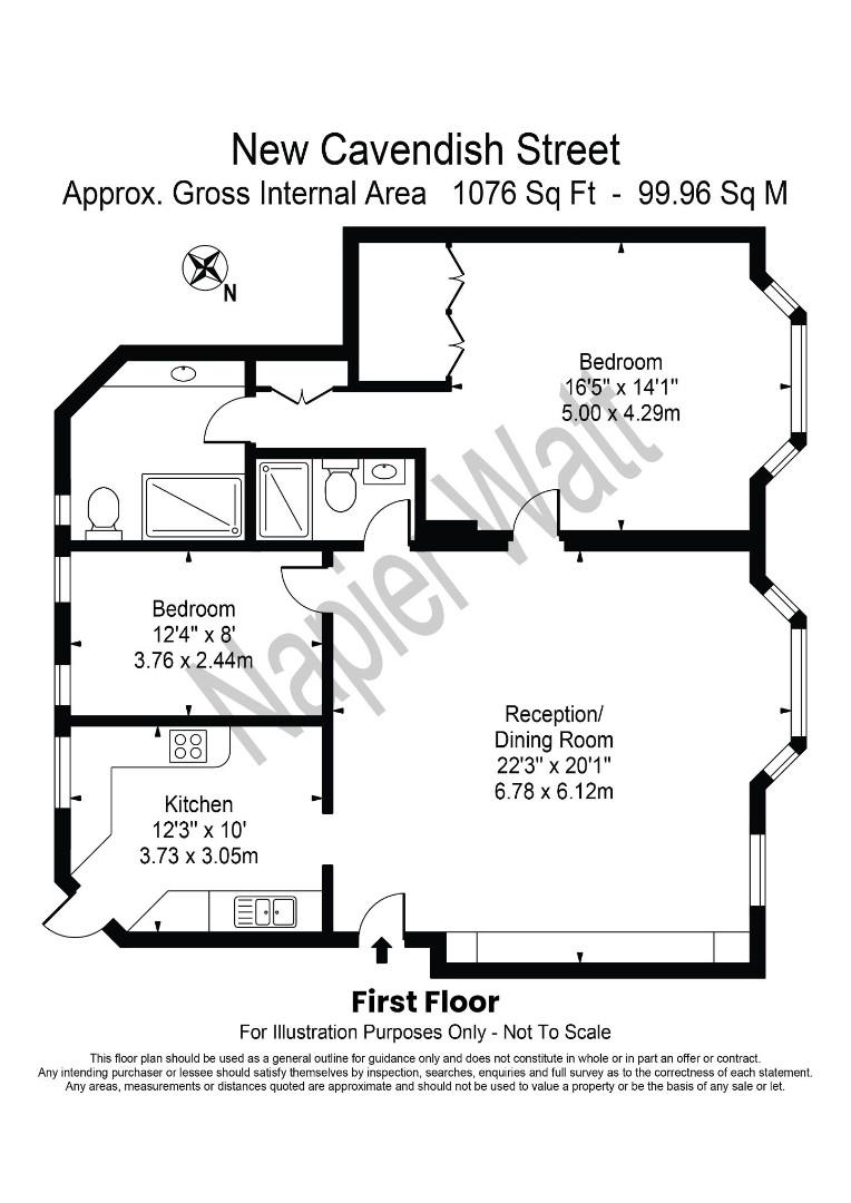 Welcome to this beautifully refurbished two-bedroom, two-bathroom apartment (1,076 sqft / 100 sqm) located on the first floor of a prestigious period building at 96-100 New Cavendish Street, at the corner of New Cavendish and Hallam Street. Designed for sophisticated living, this spacious apartment offers a seamless blend of classic architecture and modern luxury.