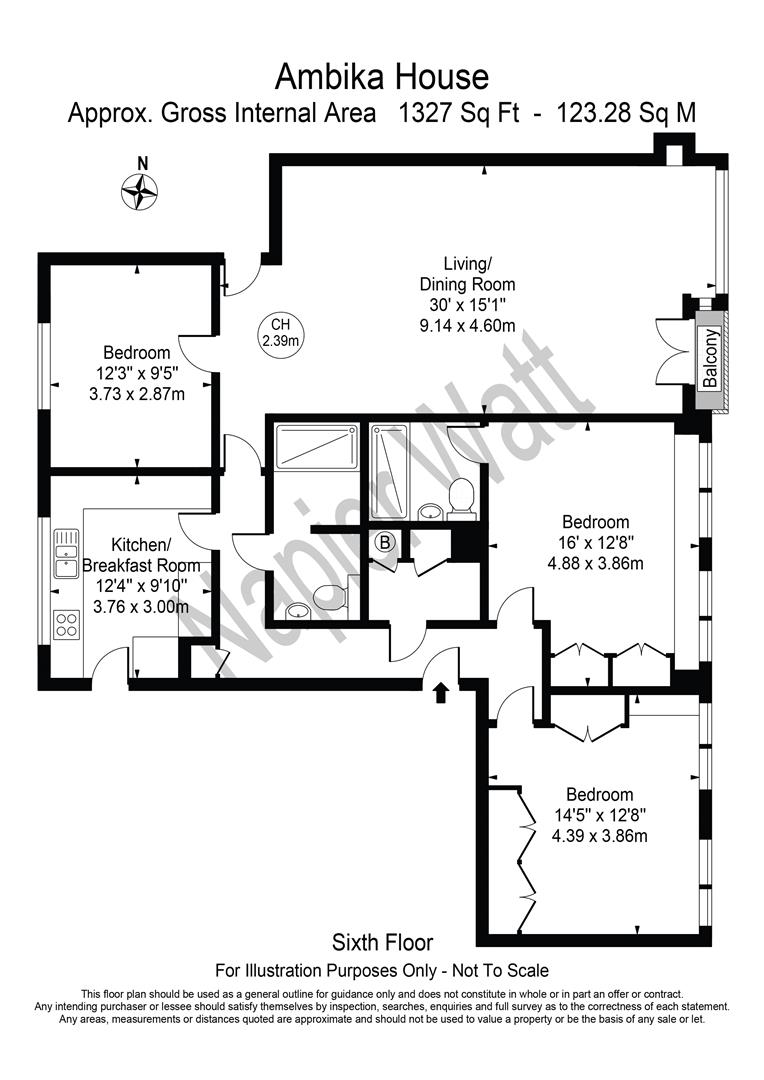 Entrance Hall : 3 Bedrooms : 2 Bathrooms : Reception Room : Kitchen : Balcony : Lift : Porter : EPC C