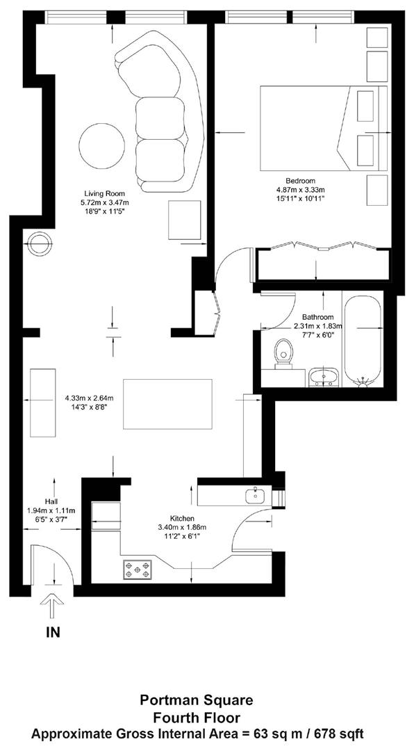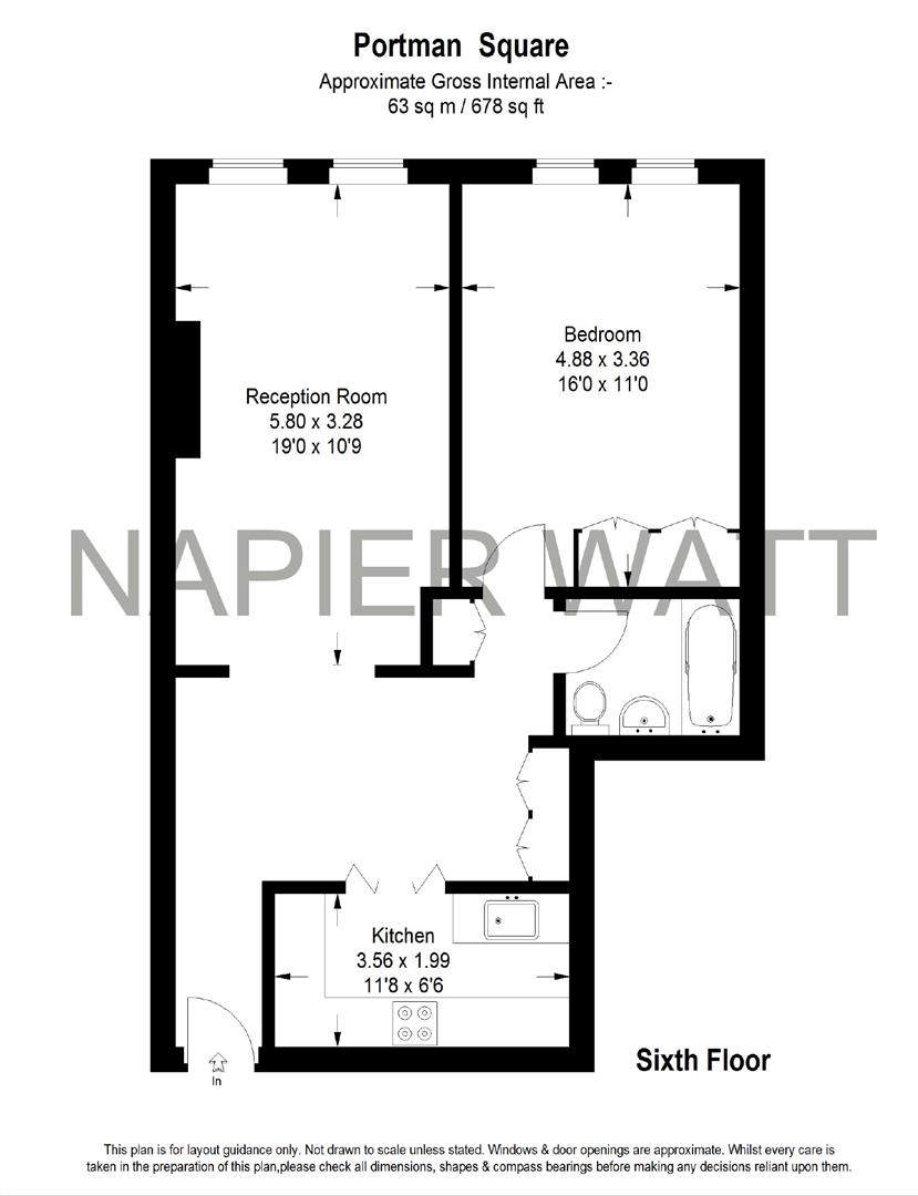 SOLE AGENTS NAPIER WATT are pleased to offer to let a particularly bright and spacious (678 sq ft / 63 sq m ) one bedroom, sixth floor apartment set to the rear of this sought after purpose built block in Portman Square. The property has attractive roof top views, over the London skyline towards Hampstead in the distance.
