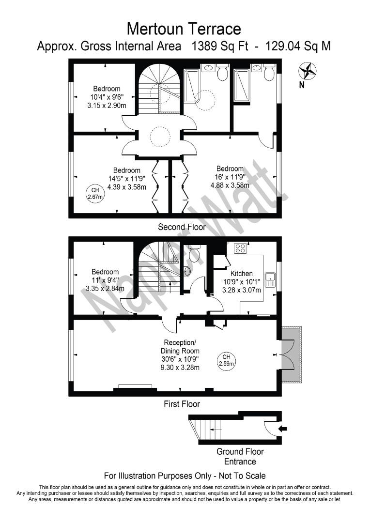 A well presented four-bedroom maisonette set within a charming purpose-built terrace, featuring its own private entrance. This spacious home spans the first and second floors, offering an equipped kitchen, a generous double reception room, a comfortable double bedroom, and a guest WC on the first floor. Upstairs, the second floor comprises a master bedroom with en suite shower room, two additional double bedrooms, and a family bathroom.
